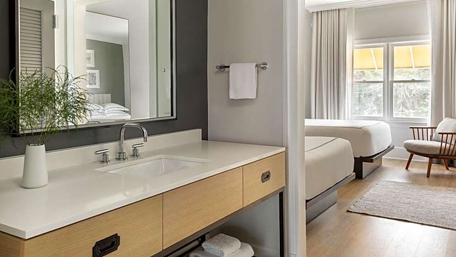 This accessible suite features a 40-inch flat-screen cable TV and a work desk.